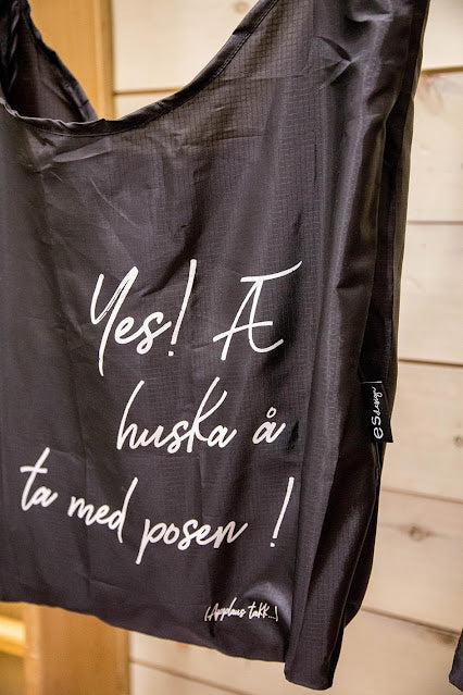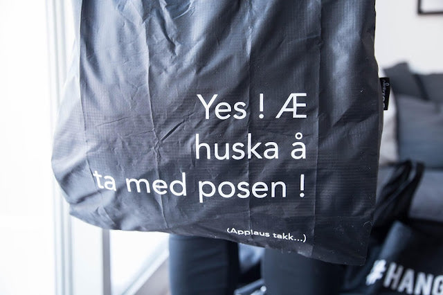 "Yes! Æ huska å ta med posen! (Applaus takk...) - i to ulike fonter/skrifttyper